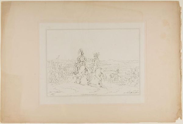 Editor: This is "The Stirrup Cup" by Sir John James Stuart, a delicate etching. It feels like a fleeting moment, a farewell perhaps. What do you see in this piece? Curator: Oh, it's pure theatre, isn't it? Like a stage set for a romantic drama. The way the figures huddle, the suggestion of a journey… it whispers of adventure and maybe a touch of melancholy. Notice how the artist uses line to create depth, almost like memories fading into the distance. Does it stir any stories within you? Editor: I guess I feel the bittersweetness of leaving. Curator: Exactly! It's a reminder that every ending is also a beginning, etched in ink and memory.