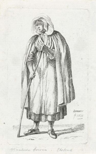 Both noblemen are fashionably attired in wide, puffy breeches with ribbon garters. The young man holding a plumed hat bears the inscription Frans Edel Man (French nobleman). This, however, was a later addition by the print’s publisher. A French nobleman evidently sold better than an anonymous youth.