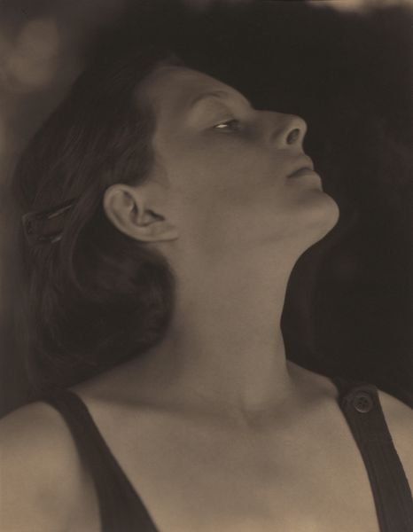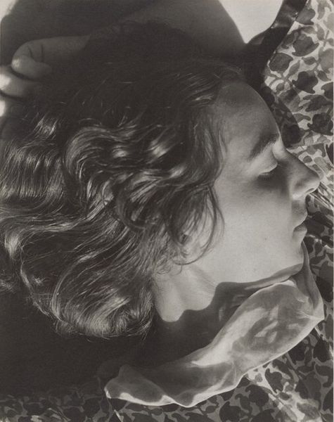 Curator: This gelatin-silver print, simply titled "Edith, Danville, Virginia," was created by Emmet Gowin sometime between 1963 and 1989. The photograph encapsulates a quiet moment. Editor: My first impression is of a pensive mood. The delicate shadows playing across her face evoke a feeling of both vulnerability and strength. It’s beautifully composed. Curator: Absolutely. Those shadows cast by what seems to be a branch, become almost symbolic. Is it a mask, a filter? How do you interpret them? Editor: They remind me of Daphne's transformation in Ovid. There's a sense of being intertwined with the natural world, almost becoming part of it. Gowin often photographed his family; this photo really speaks to the idea of woman as muse. The work fits within the wider social shifts and increasingly visibility of women in the late 20th century. Curator: Interesting parallel. The organic quality created with branches might echo the transformative quality that love, life, nature all pose to our being. It’s more than just a physical representation. Editor: Exactly. And consider the societal role of women within a familial setting in the mid to late 20th century. Often seen as secondary figures to their husband, brother or fathers. Placing Edith against a natural environment that gives her this intertwined, organic form seems intentional, powerful. It defies that previous marginalization. Curator: That reading makes so much sense. Her gaze isn’t directed at us either, but seemingly inward. The picture moves beyond surface, instead opening up introspective considerations about identity and natural presence. Editor: This quietness allows the viewer to project and connect. We find resonance across different timelines or societies and appreciate shared notions of intimacy, strength and feminine personhood. Curator: Yes, it makes you appreciate the depth and sensitivity contained within a simple black and white image. It's an ode to observation and patience. Editor: It highlights how powerful photographs of personal relationships are. And how powerfully those intimate family spaces mirror historical shifts and changing societal tides.