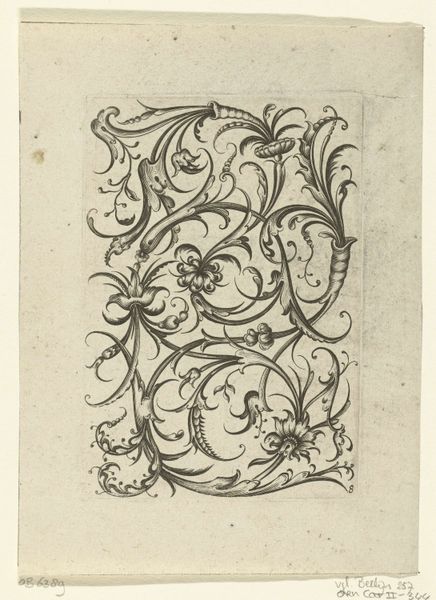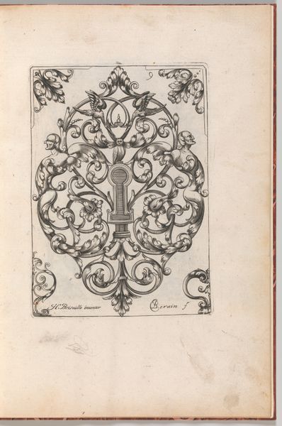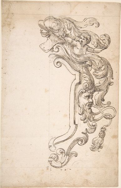Michel Liénard made this ornate design for a volute – a spiral scroll – using etching, a printmaking technique. The crisp lines and meticulous detail are achieved by drawing into a wax-coated metal plate, which is then submerged in acid. The acid bites into the exposed lines, creating grooves that hold ink. When paper is pressed against the inked plate, the design is transferred, resulting in a precise, repeatable image. The image is a riot of natural and musical forms, all rendered with extraordinary precision. Note the profusion of leaves, grapes, and classical instruments. The volute itself is embedded within this composition, its curves echoed by the swirling foliage. These elements evoke a sense of abundance and harmony. Liénard’s design would have been reproduced and disseminated widely, offering inspiration to artisans and craftsmen across Europe. The print, in its essence, demonstrates the power of reproducible design in shaping aesthetic tastes and influencing the production of decorative objects during this period. It underscores the vital role of prints as conduits of creative ideas, blurring the lines between art, craft, and industry.