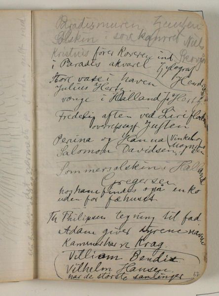 This meticulous inventory, created before 1908 by Niels Larsen Stevns, catalogs paintings by Joakim Skovgaard and their owners. The script itself becomes a potent symbol, an act of preservation. Consider the names listed: "Castor & Pollux temple." These mythological twins, revered in antiquity, symbolize fraternal devotion and immortal life. Their presence here, amidst mundane records, elevates the list, connecting it to a grand narrative of human aspirations. Like the figures of Castor and Pollux who reappear on Roman coins and Renaissance frescoes, the enduring power of classical myths has been carried through art history. It is a deep-seated human desire to preserve and remember, a longing to defy mortality. This impulse, rooted in our collective unconscious, drives the creation of lists like these, echoing the meticulous care taken in ancient catalogues. The act of cataloging itself embodies a struggle against the ephemeral nature of existence, a potent emotional drive that binds us to both past and future. Here, the image takes on new life, reminding us that the need to record, to remember, is a cycle repeating through time.