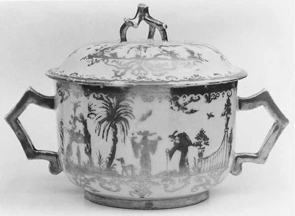This porcelain bowl with cover was created by the Meissen Manufactory in the 18th century. During this time, European artists frequently produced works inspired by the aesthetics of the East. The scenes decorating the bowl are what are known as ‘chinoiseries’. These fanciful, and often inaccurate, depictions of Chinese life became a popular trend. These exoticized representations, while seemingly innocuous, reflect the complex power dynamics of the colonial era. Western artists appropriated and reinterpreted Eastern cultures, often reinforcing stereotypes. What does it mean to create an image of another culture without truly understanding it? What happens when these images circulate, shaping perceptions and solidifying biases? Consider the emotional impact of viewing one's culture through such a distorted lens. This bowl is more than a decorative object, it's a reminder of how cultural exchange can be fraught with misrepresentation, shaped by the gaze and power of the dominant culture.