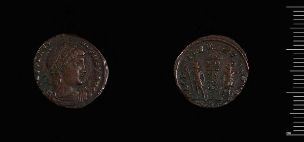 Curator: Let’s examine this artifact: a bronze follis of Constantine I, minted in Trier. It weighs just under 4 grams. Editor: It feels ancient and weighted with untold stories, doesn't it? Like holding a tiny, tarnished sun. Curator: Precisely. The coin features a portrait of Constantine, and on the reverse, we see the gateway to a military camp. Editor: That gate is so rigid, a symbol of Roman power, I imagine. Yet time has softened it, almost blurring the lines. Curator: Indeed. This coin served as propaganda, broadcasting the Emperor's image and authority throughout the Empire. Editor: And now, it whispers to us of the past. It makes you wonder about the hands it passed through, doesn't it? Curator: Exactly, from an emperor’s reach to ours, these objects are still in communion with the past, if we listen. Editor: It’s an amazing artifact that takes my breath away every time I look at it.