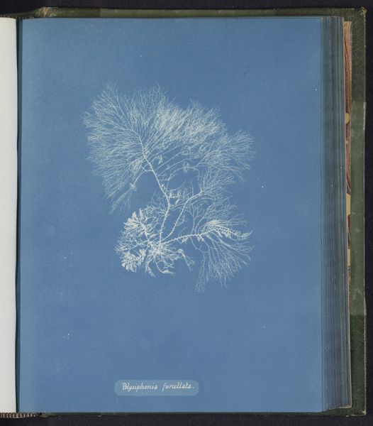 Editor: Here we have Anna Atkins' cyanotype, "Polysiphonia formosa", from around 1843 to 1853. The stark white seaweed against that intense blue...it's almost ghostly, like a spirit captured in print. It has this unique scientific yet artistic quality that really strikes me. What catches your eye when you look at it? Curator: Oh, it's utterly enchanting, isn't it? For me, it whispers tales of two worlds colliding: rigorous scientific documentation and the pure, expressive heart of art. Imagine Atkins in her darkroom, pioneering photographic processes while also meticulously preserving the fragile beauty of these specimens. Don’t you feel a certain reverence in the precise placement, how each frond tells its story? It is like a portrait, wouldn't you say? Editor: I hadn't thought about it like a portrait, but I can see it. It's elevated and individual, somehow. But the cyanotype process itself… does that contribute to its artistic quality? Curator: Immensely. The Prussian blue becomes the atmosphere, the emotion. The imperfections, the subtle variations in tone, they become the brushstrokes, imbuing the print with a unique character. She saw not just specimens but art, long before photography was truly embraced by the art world. There is this deep connection between nature and method...I really love it. Editor: It’s fascinating to think of her artistic eye alongside her scientific pursuit. Curator: Precisely! It makes me wonder, doesn't it, about how our perception shapes our understanding. What seemed purely scientific then now carries this weight of artistic intention and interpretation. Art history, it seems to me, is ever evolving in light of this. Editor: Absolutely, looking at this now, knowing what I do about her context...it’s so much richer. Thanks for sharing your insight!