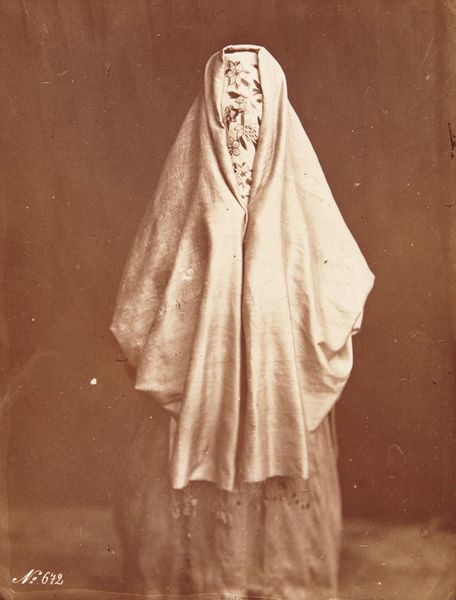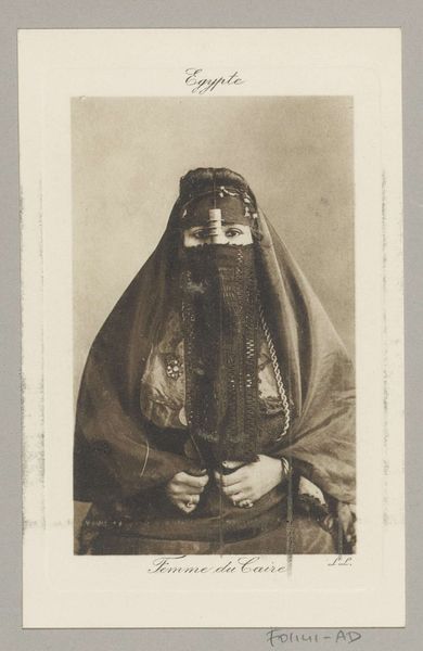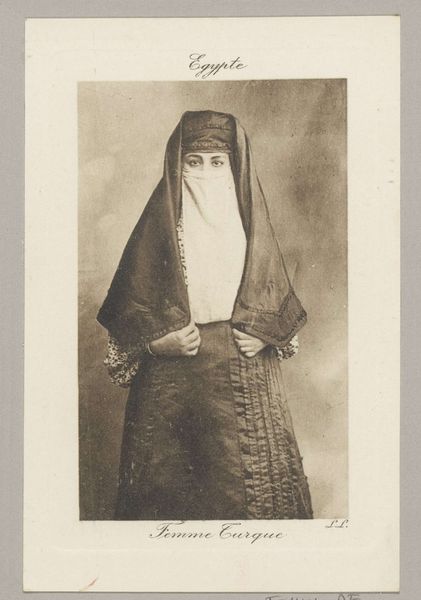 Editor: This is a photograph titled "Costumes of Michaelenses, Azores, Portugal" by A.J. Rapozo. It shows a barefoot woman in a long skirt and shawl. It feels very staged, almost like an anthropological study. What do you see in this piece? Curator: I see a powerful intersection of identity and representation. The “costume” isn’t just clothing; it's a visual marker deeply intertwined with cultural narratives of the Azores. Who gets to define and document these narratives, and for what purpose? Editor: So, it's not just a simple portrait? Curator: Exactly. The very act of photographing and labeling it as "costume" positions the woman as an object of study. Considering the lack of information about Rapozo, we need to ask how colonial power structures might be at play in shaping this image. Editor: That's a perspective I hadn't considered. It makes you wonder about the woman's own voice and agency. Curator: Precisely. It encourages us to question the photographer's gaze and the broader socio-political context in which this image was created and consumed. Editor: I’m leaving with so much more than I expected. Thanks!