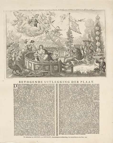 This 1747 allegory by Jan Smit commemorates the appointment of Willem IV as stadholder of the Dutch Republic. Dominating the scene, a crowned lion, symbol of the Dutch Republic, strides forward, bound with orange ribbons—a clear reference to the House of Orange. The lion, a potent emblem of strength and courage, has roots stretching back to ancient heraldry. We see echoes of it in the Lion Gate of Mycenae, a symbol of power, and in the medieval bestiaries, where the lion embodies kingship. But here, its association with the House of Orange gives it a specific political charge. Note how it subdues a dragon, a clear sign of the victory of the new Prince of Orange. Consider too, how the collective memory of previous leaders intertwines with the present hope vested in Willem IV, an emotional and psychological dynamic shaping both the artwork's creation and its reception. This cyclical progression, where old symbols resurface, evolve, and acquire new meanings, reflects the non-linear currents of history and the enduring power of cultural symbols.
