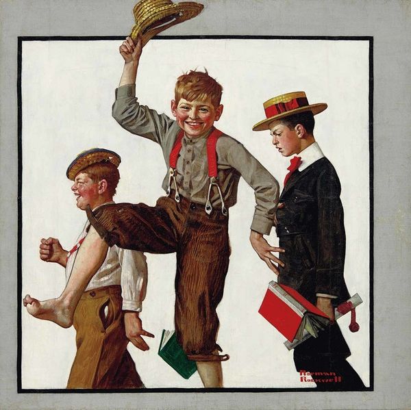 Norman Rockwell created this cover for The Saturday Evening Post in July 1937. The composition is immediately striking: a figure loaded with objects strides confidently across the frame, set against a minimal backdrop. The figure's dynamic pose, combined with the array of shapes, colours and textures, forms a semiotic system rich with cultural meaning. We see art, antiques, decorative objects; each item marked with a red tag suggesting a sale or transaction. The items form a chaotic assemblage, yet Rockwell arranges them carefully, creating an interplay between order and disorder. Rockwell often played with familiar images and narratives, infusing them with subtle irony. The circular shape behind the woman functions as a halo, and the woman can be seen as a saint of consumerism. Through the materiality and visual structure, Rockwell prompts us to think critically about collecting, value, and the commodification of culture. The figure strides into an uncertain future, weighed down, or perhaps buoyed by objects of desire.
