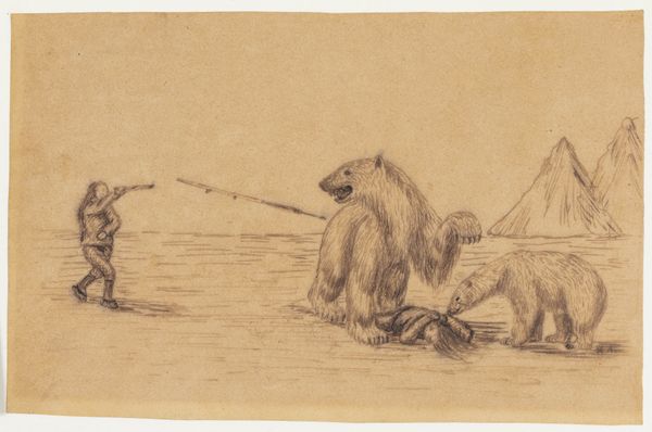 Curator: Take a look at this evocative etching and pen drawing from the Dutch Golden Age by Isaac Walraven, dating approximately from 1696 to 1765. It's titled "Twee mannen met stokken over de schouder op weg" or "Two men with sticks over their shoulders on their way." Editor: Immediately, I’m struck by how minimal it is—almost a haiku in visual form. These two figures seem caught in a perpetual, timeless journey across a landscape distilled to its bare essence. Curator: The figures themselves offer a sense of both intimacy and universality. Notice how the sticks borne across their shoulders mirror one another, subtly binding them together, perhaps hinting at shared labor, burden, or even hope. Sticks feature prominently as cultural symbols. The wand is magic, authority. But here it may refer to the everyday labor, the literal support that structures working life, the things that become who we are. Editor: And yet, despite that unity, there's such a palpable difference between them. One strides forward with what looks almost like a grin, while the other seems weighed down, shrouded, his face almost entirely obscured by the broad hat. I wonder what internal landscapes they're traveling, even as they traverse this shared external space. It suggests, maybe, that even shared burden is a deeply singular experience. Curator: Absolutely, the contrasts underscore the duality of human experience itself. The choice of etching and pen captures a raw quality. Lines etched deeply, like memories or hard won wisdom; scratchy hatching giving a depth to their cloaks which, thinking of folklore, could imply the weight of the stories carried between them. What do you feel Walraven tries to pass along to future generations? Editor: Perhaps a gentle reminder of our shared human journey. Despite all the individual challenges and burdens we carry—depicted by those heavy sticks and shadowed faces—there's an undeniable thread of connection that binds us. He shows that there's beauty and, even possibly, solace, to be found in that shared trek. Curator: Well said. The stark honesty captured in Walraven's line makes it easy to empathize, regardless of the centuries separating us. Editor: A testament, then, to the enduring power of simple lines to convey complex human truths. It is, ultimately, hopeful, and even surprisingly comforting.