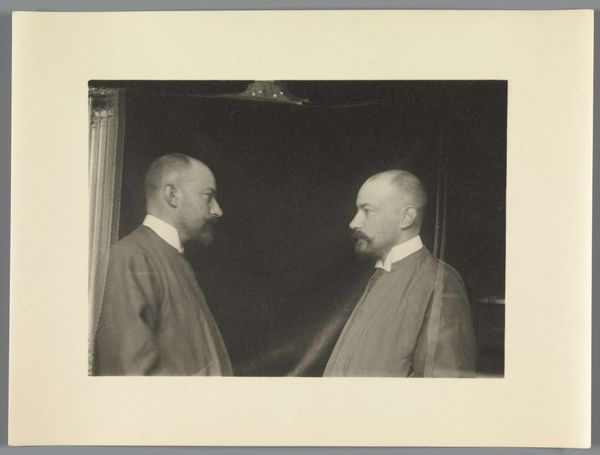 Editor: This photograph, titled "Jan Smeterlin achter een piano," was taken by Albert Petersen sometime between 1930 and 1940, made using a gelatin silver print process. I’m struck by the somber and contemplative mood of the portrait, amplified by the limited grayscale and shadows. How do you read this image? Curator: The most apparent symbol here is, of course, the piano, an object so laden with cultural meaning. More than mere entertainment, the piano became associated with refinement, class, and artistic expression, and domestic virtue. Why do you think Petersen chose this instrument as the main symbol surrounding Smeterlin? Editor: I suppose to signify Smeterlin's profession and talent? Perhaps to also present him as cultured? Curator: Precisely. And what about Smeterlin's gaze? It meets ours directly. This isn't a candid shot of an artist lost in his craft, but a carefully constructed image meant to convey a certain persona. Do you see the tension between the performative aspect, his presentation to the camera, and the inherent intimacy associated with musical creation, or with photography in general? Editor: Yes, I see that now. It feels like we’re being invited into a private world, yet we are also being kept at a distance by the formal nature of the portrait. It's interesting to consider the psychological impact of that deliberate staging. Curator: These symbols work together to cement Smeterlin’s presence within a historical and artistic context that transcends merely taking someone's photograph. Editor: I see now how the photograph can serve as both a personal record and a carefully crafted piece of iconography! It definitely gives a different weight to a seemingly straightforward image.