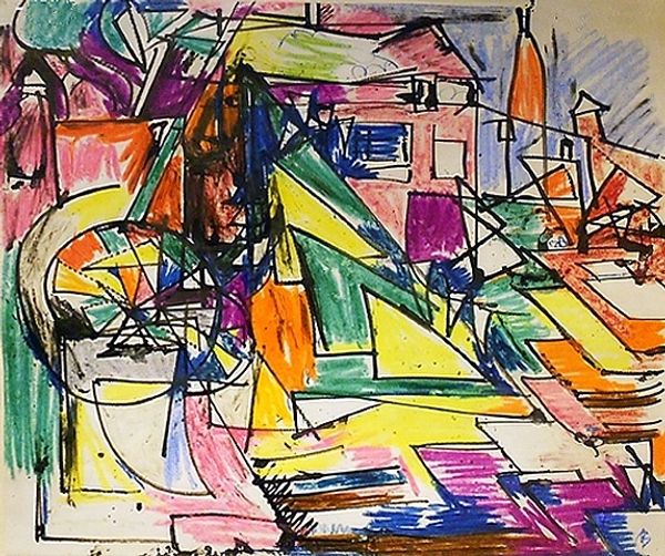 Curator: This vibrantly colored piece, simply titled "Untitled," was created by Pablo Picasso in 1937. Editor: It jumps right out, doesn't it? Like a child's block set gone wild, the sheer density of these outlined forms creating something chaotic, yet appealing. Are those houses? Curator: Precisely! While undated, this cityscape embodies elements Picasso was exploring during the period leading up to "Guernica," where geometric abstraction served to represent more complex realities. Editor: Abstraction indeed, but tell me, what material are we looking at here? Oil on canvas? The surface texture looks remarkably smooth, almost industrial, a sharp contrast to the organic shapes of the scene. Curator: Yes, Picasso employed oil paints on canvas here. But it’s interesting that you draw out the perceived smooth finish given how roughly comparable cityscapes, say by the Impressionists, attempted at similar points to modernize the genre with quick painting and emphasis on modernity. Instead, Picasso here feels strangely mechanical. Editor: The materiality seems secondary, I must admit, even inconsequential, to the way it’s put together. And those colors – juxtaposing hues contained within harsh outlines almost like stained glass held together by the stark black lines – it suggests confinement to me. Was this during a particularly oppressive period politically? Curator: Indeed. Contextually, 1937 was a period of rising tensions in Europe. The Spanish Civil War had erupted, casting a dark shadow, leading up to the atrocities of WWII, and these works, like Guernica itself, seem attempts at speaking against an ongoing political and social turmoil, the destruction of place, the anxiety of home. Editor: That tension resonates. You see how art can embody not just visual information, but tactile suggestions of a cultural moment's feelings translated by hand, paint, and the very process of art making, don't you? It's a testament to the power of human creativity in all situations. Curator: Absolutely, reflecting socio-political unease and resilience in uncertain times through innovative artistry. Editor: Indeed! Well, on that rather unsettling thought, I'd say our listeners have some engaging and thoughtful starting points.