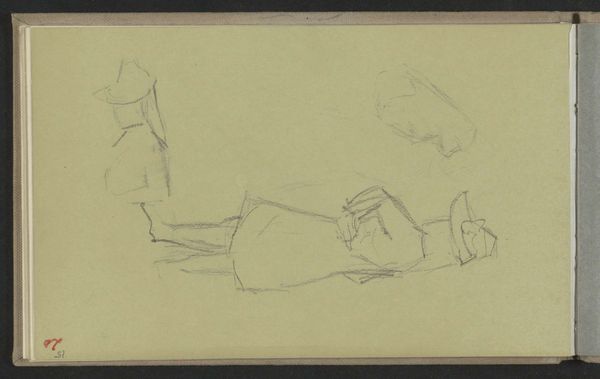 Editor: This is "Liggend Meisje," or "Reclining Girl," a pencil drawing by Matthijs Maris, sometime between 1849 and 1917. The sketch is so delicate, almost ephemeral. What story do you see hidden in these lines? Curator: It's tempting to read this as simply a tender portrayal of vulnerability, but I wonder, considering the historical context and Maris’s own life – the political upheaval, his eventual retreat from society – could this reclining figure represent something more complex? Is it resignation? Protest through passivity? Consider how gendered expectations confined women to the domestic sphere. Could this be a commentary on those limitations? Editor: That's a powerful interpretation. I hadn't thought about it in terms of social critique. Are you suggesting the act of reclining itself is significant? Curator: Absolutely. Think about the history of reclining female figures in art, often objectified, passively available to the male gaze. Here, however, the lack of detail, the ambiguity of the setting, the sketch-like quality—it all resists that tradition. Perhaps it’s reclaiming agency, rejecting imposed roles. How does that reading sit with you? Editor: It shifts my perspective. Instead of just seeing a girl at rest, I see a figure pushing back against something, even in stillness. Curator: Precisely. It’s a reminder that even seemingly quiet images can be sites of resistance. This work encourages us to consider not just what is depicted, but also what it resists, what conversations it sparks about gender, power, and representation. Editor: It’s incredible how much history and theory can be layered into such a simple sketch. Thank you for shedding light on its complexities! Curator: And thank you for bringing your insightful questions! It’s through these dialogues that we continually re-evaluate art and its connection to the world around us.