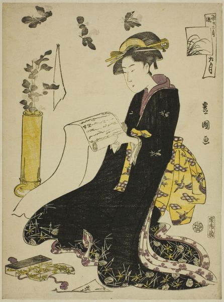 This woodblock print depicts a woman with a shamisen and cat, created by Yashima Gakutei. The shamisen, a three-stringed instrument, symbolizes artistry and entertainment in the floating world of Edo Japan. The cat, often associated with good fortune, sits contentedly. Observe how the cat, a creature of comfort, has journeyed through various cultural epochs. In ancient Egypt, it was revered, whilst in medieval Europe, it suffered persecution, often linked to witchcraft. Yet, in Japan, it embodies a gentler spirit, a bringer of wealth, its presence echoing in beckoning cat figurines found in businesses. The image evokes a sense of fleeting beauty, reminiscent of "mono no aware," a poignant awareness of life's impermanence. The artist skillfully uses the cat as a visual anchor, drawing us into a deeper reflection on the ephemeral nature of existence.