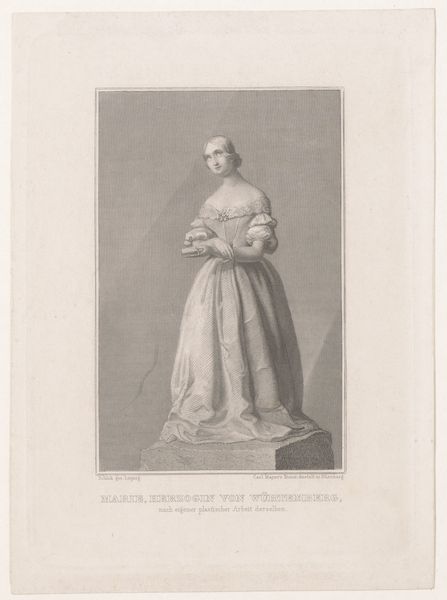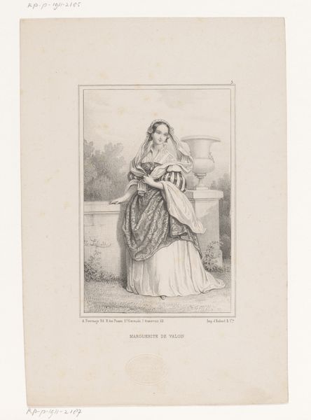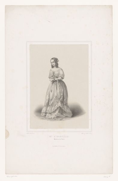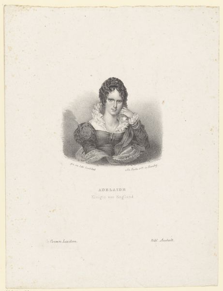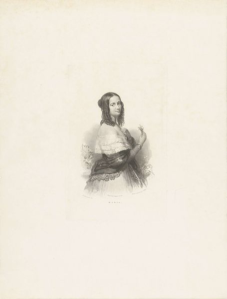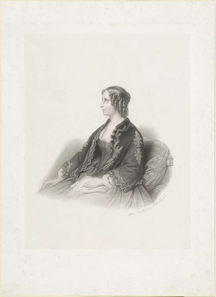Curator: Let's consider this rendering in graphite. What captures your attention initially? Editor: There's an interesting balance of composure and almost...restraint. The subject sits formally, but her expression suggests an inner thoughtfulness, maybe even defiance. Curator: We're viewing a drawing made by Marie-Alexandre Alophe in 1848. It depicts Harriet Beecher Stowe. At the Rijksmuseum, this portrait acts as a touchstone for antebellum symbolism. The meticulous draftsmanship almost invokes Neoclassical ideals, a very clear aesthetic choice. Editor: Neoclassical in technique, yes, but Stowe herself was far from that in spirit. Consider what she was on the cusp of unleashing. Uncle Tom's Cabin was published just a few years later and would become one of the most incendiary texts regarding slavery ever written. This artwork hints at an emerging political power. Look at the pen she's holding. Curator: And at the small volume in her hand. One could consider it an allegory of intellectual pursuits—of a poised lady engaged with literary culture. Editor: I read it as a symbol of the potent force about to explode in society. A domestic looking weapon if you will. It isn't aggression but subtle calculated resistance. Did Alophe foresee that, or did he perceive Stowe as just another society woman of letters? Curator: A perplexing tension. Perhaps it lies in how symbols are received. A pen for one, becomes an incisive sword for another. Editor: Indeed. Knowing Stowe's later impact, seeing her represented here in such a measured style, forces us to reconcile that visual with the revolutionary nature of her work. The weight of societal expectation clashing with the bubbling undercurrents of radical change. Curator: An accurate portrayal would have presented an intellectual depth far transcending period social categories. Even the slight smile that breaks this poised visage represents determination, revealing inner resolve. Editor: A crucial observation, really changing our view of Stowe as she takes her stance here, an inner awareness embodied so close to the surface of societal and art world norms.