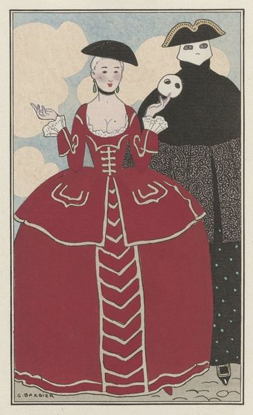 Léon Bakst made this fashion plate, Fantasy on Modern Costume, using watercolor and graphite. The rendering is so simple, like he’s just marking the paper. It's all about shapes and colors. Like he starts with the idea, not the specifics, and then paints his way in. Look at the red dress, it’s covered with these teardrop shapes, like seeds fallen on the surface. The colors are flat, almost like they are cut from paper and pasted down, but the graphite line work gives definition. It makes me think of Matisse. It’s as though the image is a stage set itself. Bakst designed sets and costumes for the Ballets Russes. His work shares something with Sonia Delaunay’s textile and costume designs, and recalls Picasso’s for the Ballet Russe, Parade. This is where art forms merge, exchange ideas, and converse with one another. We get to listen in.