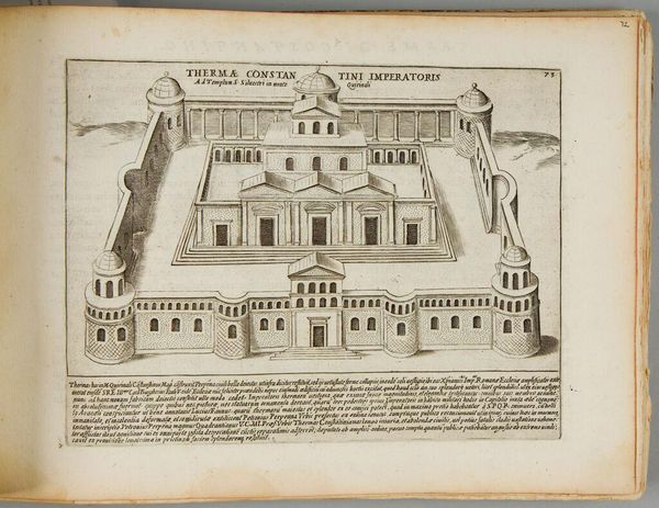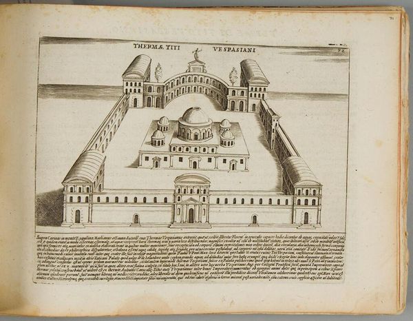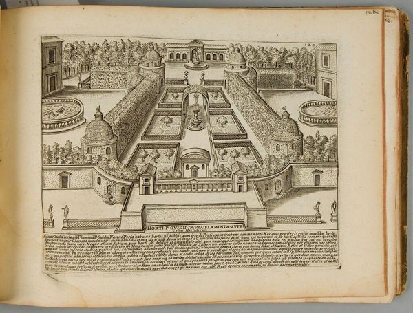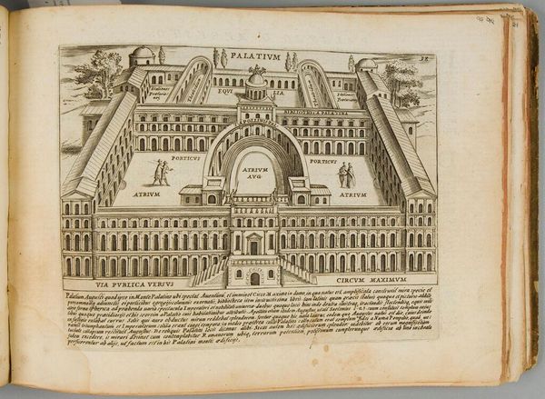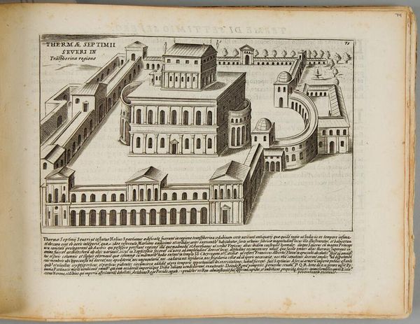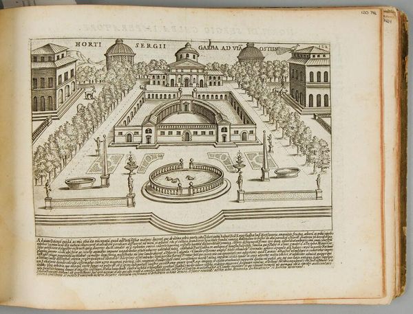 Curator: This detailed plate shows Giacomo Lauro’s rendition of "The Campus Martius," part of a series depicting ancient Roman monuments. I find it striking how this bustling field is rendered with such geometrical precision. Editor: There's a stillness to it, isn't there? Despite being a public space, a site for military training and elections, Lauro gives it an almost dreamlike quality. The precision you mention almost feels like a method to control something wild. Curator: Control is an interesting word. Perhaps “ordering” is more apt? Look at the obelisk; it is a sundial's gnomon, casting a shadow across the ground, marking time itself. Editor: Yes, and this timekeeping is intertwined with power. The Campus Martius was more than just a field, it was where the Roman state performed and displayed its power. The ordering isn't just aesthetic, it's deeply political. Curator: So true, and I think understanding the intersection of aesthetics and politics is crucial to fully appreciating this image. It’s more than just a map, it’s a statement. Editor: Precisely. Looking at it now, I see not just a place, but a carefully constructed ideology, frozen in ink.