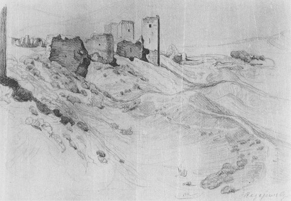 Editor: So, this is M.C. Escher’s "Lava Flow from Etna," created in 1933. It’s a black and white print, and my first thought is how stark it is. What strikes you about this piece? Curator: What grabs my attention is not simply the depicted scene but the political ecology implied in this stark rendering. Escher's intense contrast mirrors the raw power of nature reshaping landscapes but also reminds me how human communities exist within—and are impacted by—geological forces. How might the residents nearby perceive the mountain: is it simply a source of agricultural wealth, or also a threat? Editor: That's a good question. I was mainly thinking about the formal composition, but I guess I wasn’t considering how that landscape affects lived experience for people. Curator: Exactly. In what ways does Escher make nature itself the protagonist? How is the environment not a simple, inert background to daily life? How does Escher capture a time of change, in between an eruption that previously transformed the land, but also right before another could drastically re-arrange its communities? Editor: I see your point. The mountain and the fields are the central focus. It’s not a peaceful, static landscape painting. There’s tension here, a sense of underlying dynamism and possibly threat, so perhaps he makes that tangible. Curator: Right. We have to ask who benefits, and who suffers when the earth's crust convulses like this, altering patterns of habitability and cultivatable land. By viewing the landscape this way, it's almost impossible to remove power relations in society. It seems to urge us to rethink our relationship with a world that can—and perhaps inevitably will—remake itself. Editor: I hadn’t thought about it that way at all. Looking closer and thinking about the environmental impact, it does change how I see this work and Escher’s possible intentions in depicting such raw tension. Thanks!