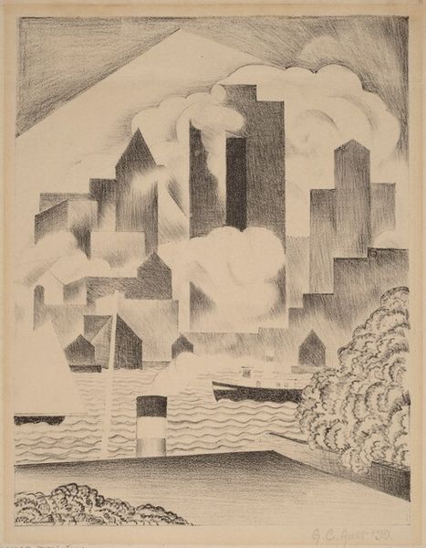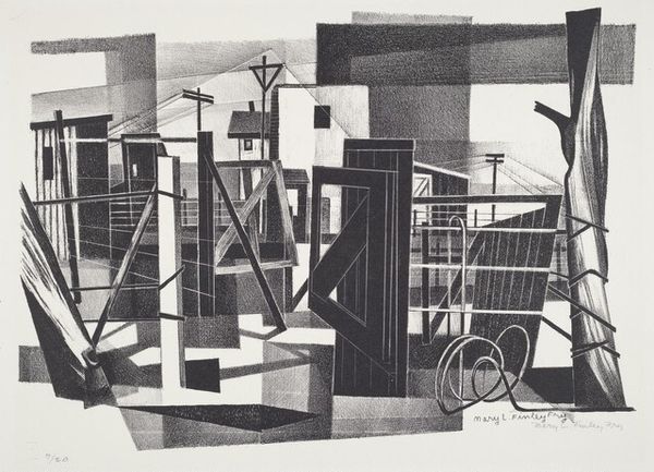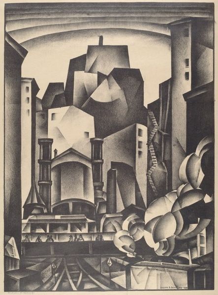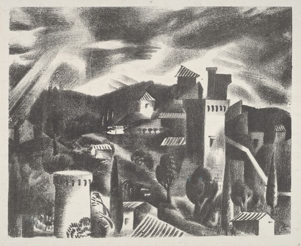 Benton Spruance made this lithograph called Changing City in 1934. The scene depicts a city undergoing transformation, a theme that resonated deeply during the Great Depression in the United States. Spruance uses a stark, almost geometric style to portray the urban landscape. Note the contrast between the older, more ornate buildings and the emerging modern structures. Consider the elevated view which might suggest the planning and design of a city as a whole. This reflects the rise of urban planning and its power to re-shape existing cities. The presence of the airship hints at technological progress, but also perhaps the shadow of military expansion. Art historians often turn to urban planning documents, architectural journals, and social surveys to understand the context in which artists like Spruance operated. Art, after all, is never created in a vacuum, and its meanings are always tied to the social and institutional forces of its time.