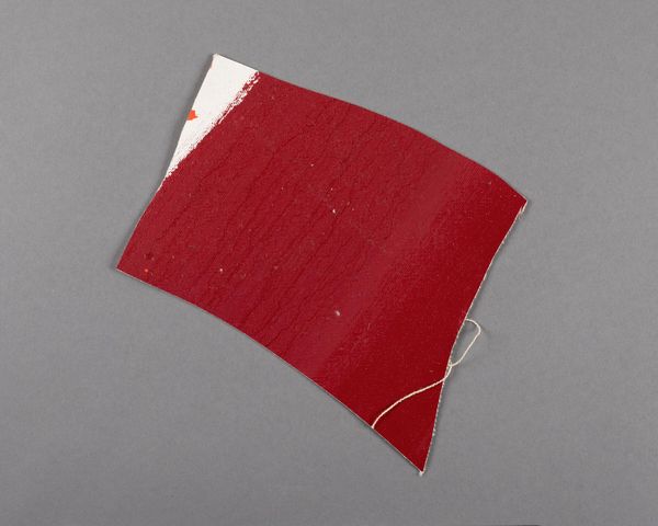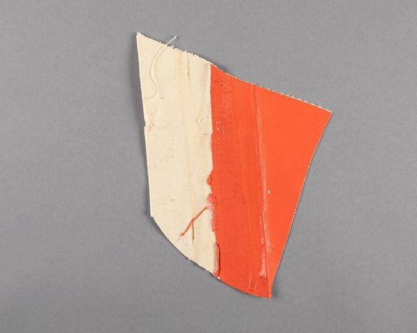 Editor: Here we have a fragment of painted canvas by Barnett Newman, housed at the Harvard Art Museums. It's a striking orange color. How do we interpret this piece, especially given it's just a fragment? Curator: The fragment compels us to consider how museums and galleries shape our perception of art. Was this fragment deliberately preserved, or is it happenstance? How does its institutional context influence our interpretation? Editor: That's a great point. It's easy to forget about the museum's role in shaping the narrative around an artwork. Curator: Exactly! The fragment raises questions about the value we assign to completeness versus the evocative power of the incomplete. What do you make of the raw canvas alongside the bold color? Editor: I hadn't thought about that, but I see how the unfinished part of it hints at artistic intention. Thank you for expanding my understanding of the piece.