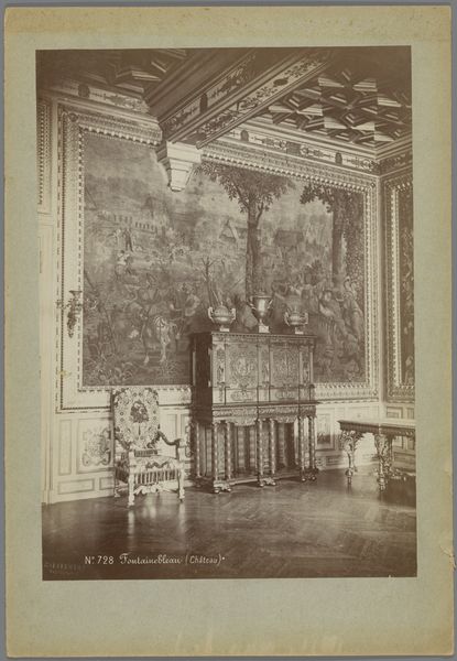 Editor: This is a photograph from between 1855 and 1885 by E. Reulbach, titled "Assyrische zaal in de Glyptothek in München", which translates to "Assyrian Hall in the Glyptothek in Munich." It's a view of a room adorned with recreations of Assyrian reliefs. It's fascinating how they've staged this space. What do you make of the impulse behind recreating an ancient Assyrian space within a 19th-century museum? Curator: The Glyptothek’s Assyrian hall represents a fascinating moment in the 19th century, one of burgeoning archaeological discoveries and the public’s growing appetite for understanding ancient civilizations. Reulbach’s photo captures the museum's ambition not just to display artifacts, but to construct an immersive educational experience. How do you think this kind of reconstruction shapes the viewer’s understanding of Assyrian culture? Editor: Well, seeing it presented this way, I suppose it implies a certain power dynamic. The Assyrian culture is presented as something to be observed, almost consumed, within a European context. The museum itself becomes a symbol of control. Curator: Precisely. Think about the context of Orientalism. These reconstructions weren’t necessarily aiming for accurate representation; they often reflected contemporary European fantasies and political agendas. What’s lost when we "recreate" another culture’s space? Editor: Authenticity, obviously, but also perhaps an understanding of the original function and context. It becomes a kind of staged performance rather than a genuine encounter. Curator: Indeed. And what does this say about the museum's role – is it an educator, a stage for power dynamics, or something in between? Editor: I guess it’s all of those things, a complicated intersection of history, power, and representation. Thanks; I see this photograph in a completely different light now. Curator: My pleasure. Considering art as a reflection of its time and the society that creates and views it always deepens the experience.
