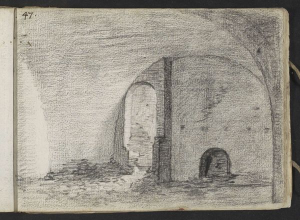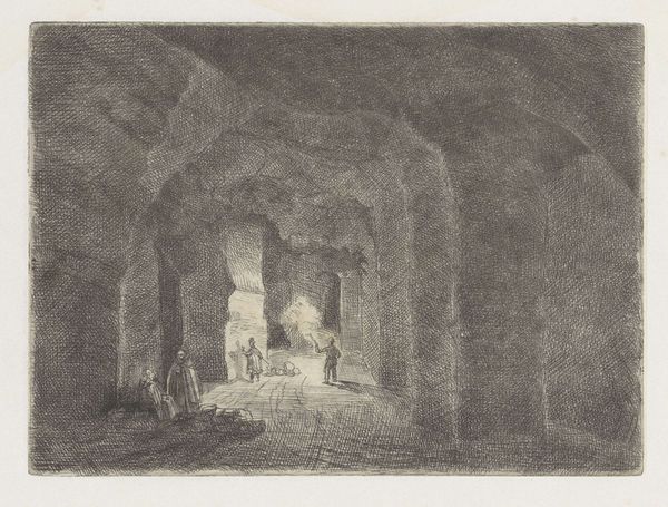 This image of the underground network of the Sint Pietersberg in Maastricht was created by Alexander Schaepkens using etching, a printmaking technique that allows for detailed and reproducible imagery. The etching process begins with a metal plate, coated with a waxy ground. The artist then scratches an image into this ground, exposing the metal. When the plate is dipped in acid, the exposed lines are eaten away, creating grooves. Ink is applied to these grooves, and the plate is pressed onto paper, transferring the image. The texture and depth of the lines give the print its characteristic look. Here, etching becomes a perfect medium to capture the rough, cavernous spaces of the Sint Pietersberg. You can almost feel the cool dampness of the stone, the quiet hum of industry. It is a monument to human endeavor, and a demonstration of how even a print, can evoke the weight and scale of the physical world. It challenges our perception of the art world.