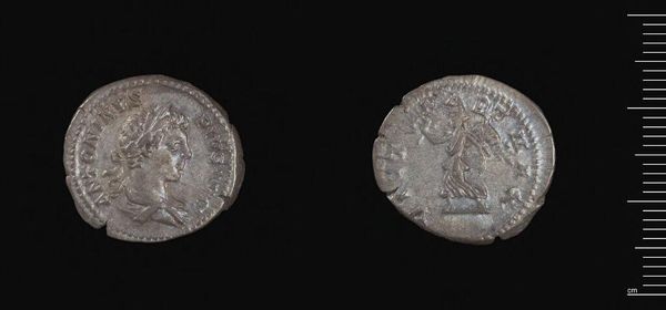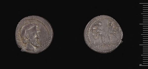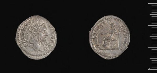 Curator: This is a denarius of Septimius Severus, a Roman emperor from the late 2nd and early 3rd centuries. It resides here at the Harvard Art Museums, weighing in at a delicate 3.28 grams. Editor: There's something starkly beautiful about its simplicity. So small, yet it speaks of empires. The silver's worn, like a well-loved story. I wonder how many hands it's passed through? Curator: Indeed, its small size belies its enormous cultural significance. Coins like this weren't just currency, they were powerful propaganda tools. Septimius Severus used them to project his image and solidify his rule across the Roman Empire. Editor: Ah, yes, image is everything, isn't it? The portrait is rather striking – a strong, resolute profile. He seems to be staring defiantly into the future, even as the coin ages into our present. Does that figure on the back hold significance? Curator: Certainly! The reverse typically depicts a deity associated with the emperor, reinforcing his legitimacy and divine favor. These images were very carefully chosen to communicate specific messages to the Roman citizenry. Editor: It makes you consider the power of visual symbolism throughout history. This tiny coin, an entire political and economic system condensed into a palm-sized object. Curator: Absolutely, it reminds us of how objects become entangled with power, and how even the smallest item can carry immense weight. Editor: What a fascinating little window into a bygone era.