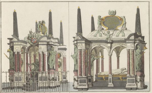 Pieter van den Berge created this print of the equestrian statue of Philip II in the palace garden in Madrid. Note how the composition divides into distinct zones, with the statue and fountain acting as central focal points, set against a backdrop of trees and figures that animate the scene. The artist’s use of color is particularly striking; the gold of the statue and fountain contrasts with the muted greens and grays of the surrounding landscape. This interplay of color and form serves to highlight the statue as a symbol of power. The print’s structure invites us to consider the relationship between art, power, and the public. It suggests a semiotic system where the statue and fountain represent not just aesthetic objects, but also cultural codes of authority and status. The detailed rendering of the statue and fountain, set against the broader landscape, challenges fixed meanings, engaging with new ways of thinking about space and representation.