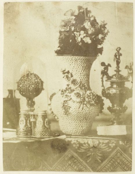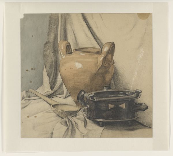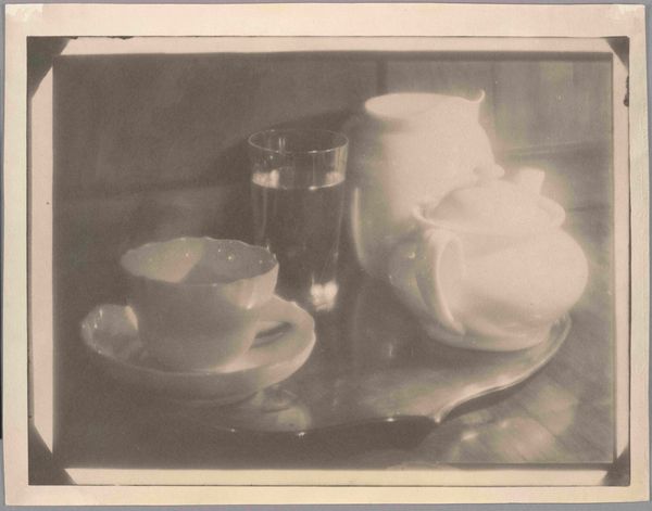 Richard Tepe made this photograph, "Stilleven met kan en potten", with an emphasis on everyday objects. Tepe’s work exists within a broader historical context, a moment in which photography was still finding its place as an art form, separate from painting. Tepe, who lived from 1864 to 1952, carefully arranged these jars, pots, and pitchers, playing with light and shadow to create a composition that feels both familiar and deeply personal. These still life images were a way for artists to explore themes of domesticity and the everyday lives of women, often confined to the home. The muted tones and careful arrangement evoke a sense of quiet contemplation. This work invites us to consider the value we place on the objects that surround us, and how they reflect our identities and histories.