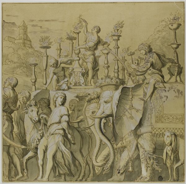 Editor: So, this is *Triumphs of Julius Caesar: Canvas No. VI*, dating back to the 18th century and currently at the Art Institute of Chicago. It's by Andrea Mantegna and done with pen and ink on paper. The procession feels incredibly grand, almost theatrical, but I wonder, how do we unpack all the layers of history packed into this scene? Curator: It's a powerful piece precisely because it speaks to how history is constructed and consumed. Think about it: Mantegna, in the Renaissance, is already looking back at Rome, filtering it through a very specific lens of humanist ideals and courtly power. These "triumphs" were potent symbols, not just of military victory, but of the ruler's right to rule, constantly reinforced through public displays and, later, artworks like this. What do you notice about who gets to participate in this constructed glory? Editor: Well, most people seem to be caught in the spectacle of the triumph. There are figures hauling loot. Musicians seem detached. It's hard to miss the overwhelming display of military power. Curator: Exactly. And who commissioned such imagery? Certainly not the conquered, but the ruling class, to bolster their own image. It tells us a lot about how societies used and manipulated historical narratives for contemporary political gain. Do you think the artist is endorsing the triumphs themselves? Or subtly critiquing them? Editor: That’s a tough question. The grandeur suggests endorsement, but the sheer scale could also highlight the hubris of empire. It’s certainly a powerful statement about the creation of historical narrative. Curator: It shows how much our interpretation relies on understanding the social and political currents within which it was created, reminding us that history is always a conversation. Editor: Absolutely. Thinking about the artwork in terms of cultural construction gives a whole new understanding of its context.