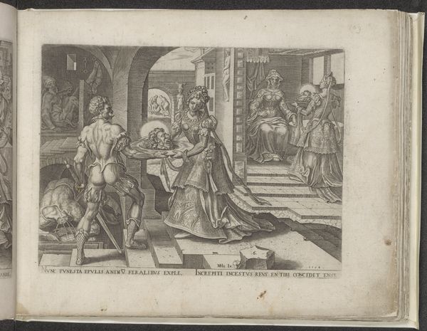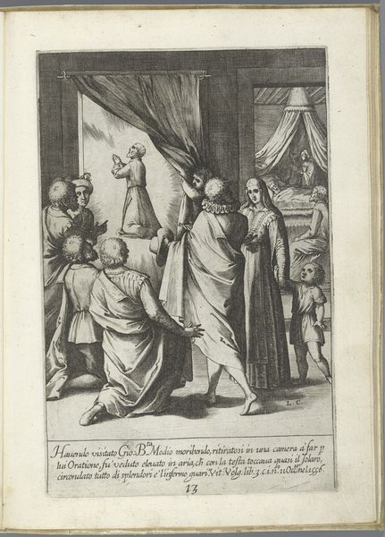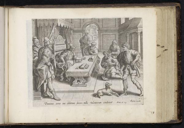 Curator: Looking at "Stefanus voor de hogepriester," a print dating from 1643-1646, currently housed in the Rijksmuseum. The image, rendered in engraving, captures a scene of intense deliberation or judgment. Editor: It strikes me first as dramatic and theatrical. The chiaroscuro is quite intense, throwing certain figures into stark relief and obscuring others in shadow. The composition is incredibly structured, guiding your eye deliberately through the unfolding narrative. Curator: Indeed. The artist—though currently listed as Anonymous—demonstrates considerable skill in employing the print medium to convey depth and emotional tension. The subject is Saint Stephen before the High Priest, and the details of the figures' attire and setting are illustrative of the cultural context. What is significant is the accessibility this print format offered to wider audiences, allowing them to engage with religious and historical narratives. Editor: The linear precision really emphasizes the gravity of the scene. Each character is delineated with distinct, almost harsh lines that mirror the rigid social structure represented. Notice the detail of the architectural backdrop—it underscores the solemnity. There’s also an interesting contrast with the implied motion within the crowd scene, which suggests a narrative on the brink of explosive conflict. Curator: Consider too how printmaking operated as a collaborative enterprise, involving the artist, engraver, publisher, and distributors. The materials used—paper, ink, and the copperplate—each shaped the final outcome, influencing the availability and distribution of this image within early modern European society. Each decision on paper choice and image sizing influenced its circulation, impacting the reception of the story of St. Stephen. Editor: Right. But I can't help but observe how effectively the anonymous artist conveys this solemn tension using only line and shade. It has a real visual impact; the viewer is drawn in and placed within the event. Curator: The dissemination of visual narratives like this print helped to propagate ideologies. Reflecting on it now, what resonates most is its demonstration of how images actively worked within historical contexts. Editor: For me, it's a brilliant, distilled moment. I will surely think of its formal execution next time I study engravings.