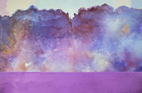 Ronnie Landfield made this watercolour, House by the Ocean, with the kind of hands-off approach that lets the medium do its thing, like setting the stage for a beautiful accident. The colours bloom and bleed into each other, a dance of pigment and water, really emphasizing artmaking as a process. Up close, the texture is all about the flow. Watercolors do that, you know? It’s thin, transparent, a kind of controlled spill. Look at the jagged line where the yellow meets the violet, like a coastline under a stormy sky. It's chaotic, but there’s also a weird kind of order, a balance between the colours and the space. You can imagine the artist tilting the paper, guiding the flow, but also letting go, trusting the water to find its own path. This piece is a departure from some of Landfield's later, more geometric works, but you can see the seeds of his interest in colour and composition. Think of Helen Frankenthaler too, who knew all about the beauty of letting paint soak into canvas. Like them, Landfield reminds us that art is always an experiment, a conversation, a process of discovery.