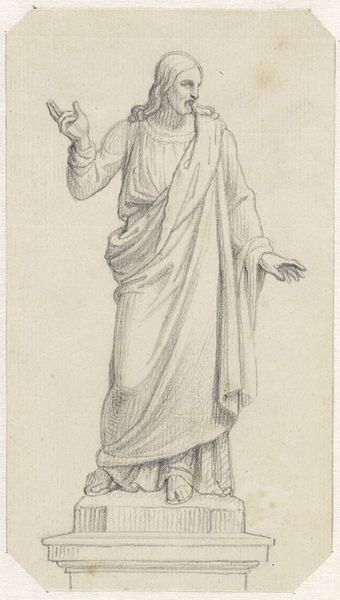 Curator: Well, hello there! I’m just swept away by this ethereal figure in Carlo Maratti's "Dancing Figure," created sometime between 1625 and 1713. It's like a wisp of a dream captured in ink. Editor: My first thought? She's floating. The linework gives her movement, and the pose… she feels almost unbound by gravity, definitely evoking Baroque ideals. Curator: Precisely! It has all the lightness of a summer breeze. The figure is holding, or rather offering, these beautiful wreaths – could be laurel, could be something more symbolic? There's an element of joyful abandon that's infectious, you know? Editor: Absolutely. Think about it: the wreaths she’s holding can allude to victory and status in this very European vision of power and divinity, a sort of self-coronation that perhaps obscures her deeper motivations as a historical personage. But how do we view victory differently today when we focus on collective power and mutual support? Curator: It makes me wonder what was Maratti really imagining in his studio. Perhaps a mythological nymph? Or an allegorical figure of, oh I don’t know, grace? This artwork seems incredibly free spirited; I almost imagine her leaping off the page. Editor: Considering it's rendered with such delicate pen and ink, it also hints at the era's artistic constraints. While her dancing implies freedom, think about how class and gender affected movement then and what performative constraints governed even how upper class women like her walked. She wasn't really "free," in our modern understanding of that word. Curator: It's an interesting idea, that contrast. Light and carefree as it seems on the surface, perhaps there's a complex narrative interwoven within those lines. The material’s modesty works surprisingly well; the drawing is spare, economical even. It is such that it emphasizes movement and lightness. Editor: That modesty is deceptive. It masks how artistic representations reinforce and disseminate historical power dynamics, dictating everything from aesthetic standards to broader ideas around agency. We cannot let those be masked if we want to understand how the artwork fits into a complicated picture. Curator: Indeed. I come away appreciating this piece for how it marries seemingly opposed elements - delicacy and boldness, simplicity and profundity – I like how the artist uses toned paper too, like aged parchment that hints at secrets… I think Maratti really nailed it. Editor: For me, it is the historical tensions embodied within that lightness which leaves me still pondering, thinking… that’s the thing I will carry forth with me as I head toward the next artwork!