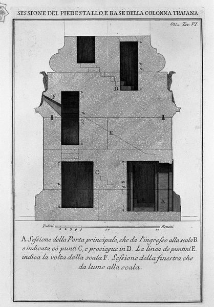 This is Giovanni Battista Piranesi’s “Cutaway view of the pronaos, or portico of the Temple of Honor and Virtue,” an etching printed on paper. Piranesi was renowned for his detailed and dramatic views of Rome, and this print exemplifies his meticulous approach to architectural representation. Look closely at the linework, its precision, and the way he uses hatching to create a sense of depth and texture, mimicking stone and brick. This print isn't just a record of a building, it’s a meditation on the labor involved in creating monumental architecture. Piranesi wasn't just an artist, but also an archaeologist. The intense labor of uncovering classical antiquity is deeply connected to the work of the printmaker. He made many prints, which were bought by wealthy tourists, thus fueling the economy. Etchings like this were luxury goods but existed within a broader economy of cultural production. They prompt us to consider the connections between artistic skill, manual labor, and the marketing of history itself.