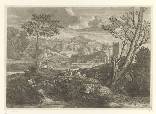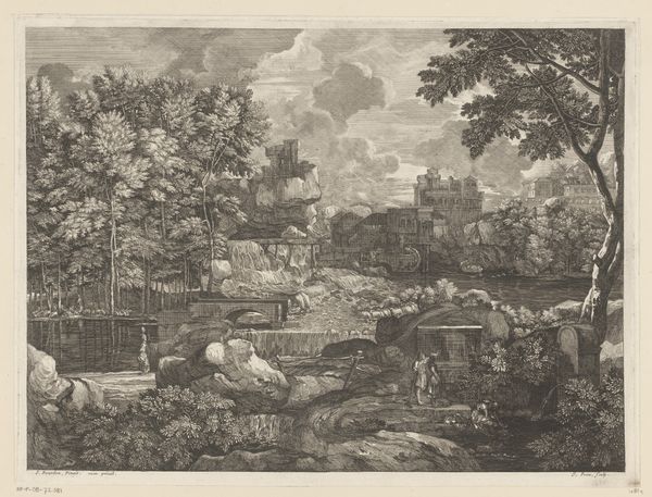 Jacques Prou made this 17th-century landscape depicting the Holy Family's flight into Egypt by incising lines into a copper plate, a process called etching. This printmaking technique allowed for the relatively quick reproduction of images, making art accessible to a broader audience. Notice how the etched lines define every aspect of the scene, from the rough textures of the rocky landscape to the delicate rendering of light and shadow. The image is not just a picturesque scene, but a testament to the skilled labor involved in its production. The artist's hand is evident in every line, each one carefully placed to create depth, texture, and mood. The complex details, combined with the many prints made from the plate, make the image a kind of commodity. By considering the material and making of this print, we see how technical skill, artistic expression, and the dynamics of production intertwine.