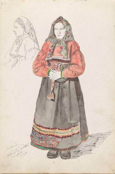Nicholas Roerich made this watercolour painting, Solveig. Look at the subtle way he's built up the colours, especially in the folds of her white skirt, it's so gentle, almost tentative. I get the feeling that Roerich wasn’t trying to capture a likeness but aiming to evoke something deeper. The textures and the way the colors bleed into each other give it a dreamlike quality. The more you look, the more you see—the way the red vest pops, or the intricate patterns on her skirt. I find myself drawn to the way Roerich handles the hands. They're clasped together, almost as if in prayer or contemplation, but they are more like ghostly suggestions of hands than solid forms. Roerich also made paintings of landscapes with mountains that seem very influenced by Japanese prints. I think you can see this in the emphasis on line here, and the way the figure fills the frame. I like that this piece embraces a certain degree of uncertainty, leaving room for our imagination to wander.