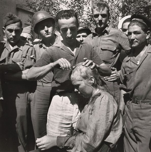 This photograph, taken in St. Tropez, France by Constance Stuart Larrabee, uses light and shadow to capture a moment of stark human drama. The tones range from deep blacks to luminous greys. Look closely, and you’ll see how the play of light across the faces and clothing sculpts the figures. There is a strong contrast in the textures, the rough cloth of the mens’ uniforms, the striped dresses and bare heads of the women. What catches my eye is the way the composition directs our gaze, the arrangement of the figures creating a claustrophobic feeling, a visual representation of the tension in the scene. Larrabee was a South African photographer who documented rural Black communities under Apartheid. Her work is defined by the intimacy and respect she demonstrated for her subjects, even when documenting social injustices. She, like many women photographers of her generation, were keen observers of the everyday. In this image, she reveals a complexity of emotions. Art always embraces ambiguity, it does not offer easy answers.