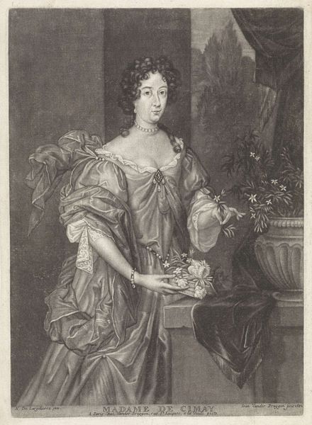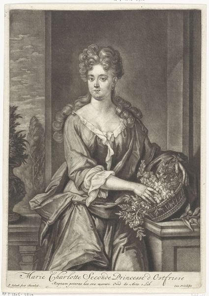 This is an anonymous portrait of Maria II Stuart, made with engraving. Notice her hands: they cradle a basket of fruit. This motif harkens back to classical antiquity, specifically Pomona, the Roman goddess of fruitful abundance, orchards, and gardens. The fruit is not merely decorative; it’s a symbol of prosperity, divine favor, and perhaps, a subtle nod to the hoped-for fertility of the princess. Yet, consider how the depiction of fruit has evolved. From the cornucopia of ancient goddesses to the Vanitas paintings of the Dutch Golden Age, where fruit symbolized transience and mortality. The cultural memory embedded in these symbols shifts, reflecting societal anxieties and aspirations. This image subtly blends the classical ideal of abundance with a more personal, perhaps even psychological, desire for progeny and continuity. It’s a potent image, engaging viewers on a deep, subconscious level.