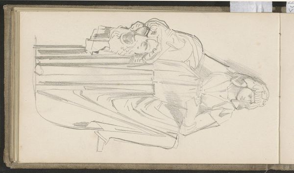 Curator: Here we have Antoon Derkinderen's pencil drawing, "Twee nonnen van de orde van de Clarissen," placing it somewhere between 1892 and 1901. What's your initial read? Editor: My first thought is constraint. The grayscale tones, the light pencil work; it feels muted and reserved, almost fragile in its execution. The composition leads the eye to read each stroke methodically to discover any hidden emotion. Curator: Absolutely. The choice to portray Clarissan nuns is significant. The Clarisses, the "Poor Ladies," are devoted to poverty and contemplation. Consider the visual austerity—the pencil medium, the seeming simplicity—mirrors the values of the order itself. The work captures the idea of dedicating a whole life of devotion to the order. Editor: But simplicity isn't empty; there's a latent geometry. The repetition of the robes, the implied lines of their forms—it's an arrangement, a constructed visual order that supports the subjects. Notice how even within such defined borders, some edges bleed out a bit into nothingness, thus creating a strong yet gentle contrast. Curator: And consider the symbolic weight. These habits aren't mere garments, but uniforms signaling identity, piety, and separation from the temporal world. The rosaries around their necks and small crucifix are potent symbols, anchoring the drawing within a rich historical and spiritual framework. It is as though Derkinderen wanted to create an archetype. Editor: The medium matters, too. Pencil on paper offers an immediacy, a directness absent in, say, oil painting. There’s an undeniable honesty in the marks left by the artist’s hand. We are catching a moment, a passing idea. I admire the almost mechanical aesthetic brought by an experienced hand. Curator: I think you’re spot on. The sketchlike quality adds a layer of intimacy, as if we’re glimpsing a private moment, a personal meditation. There is also this raw beauty as he strips the figure down to its basics. We witness a quiet encounter. Editor: Precisely. For me, the brilliance lies in its refined compositional elements and understated qualities that give us just enough visual data, which allows a powerful presence to form. Curator: A beautiful study in symbolism and restraint. It compels us to reflect on devotion, identity, and the quiet power of simple representation. Editor: Agreed, an expertly crafted composition. Its power comes not just from *what* it depicts, but *how*—its understated simplicity unlocking volumes of potential interpretations and contemplation.