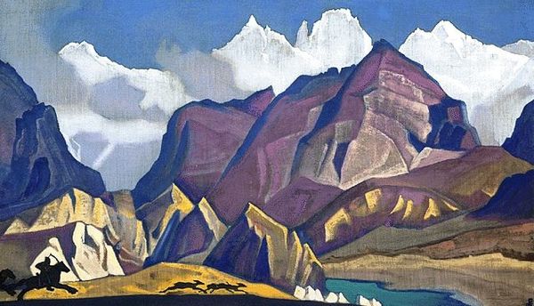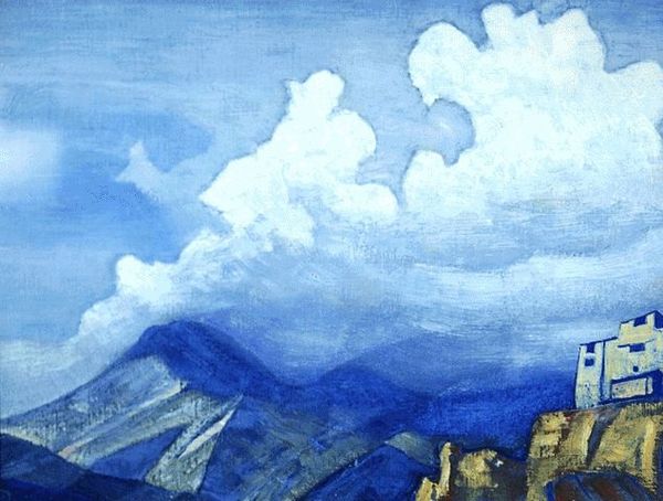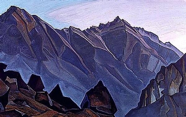 Nicholas Roerich made this painting of a Monastery in Himalayas with what looks like tempera, sometime in the first half of the 20th century. What strikes me most is how the whole picture plane is reduced to blue - mountains in blue, skies in blue - but it's the texture that gives the picture its magic. The paint is matte and dry-looking, creating a chalky effect. This gives the picture a tactile quality, like a fresco, or even dry pigment rubbed directly onto the canvas. Look at the mountain on the left. See the vertical striations? It’s as if Roerich applied the pigment with long, repetitive strokes of a dry brush. These subtle marks create a sense of depth and volume, while also reminding us of the physical act of painting. I wonder if the symbolic landscapes of someone like Marsden Hartley might have been on Roerich's mind when making this? In the end, art is all about interpretation, so maybe it's just blue mountains, who knows!