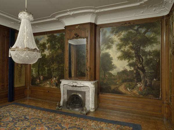 Curator: At The Art Institute of Chicago, we have a piece entitled "E-4: English Drawing Room of the Late Jacobean Period, 1680-1702." It's from the Narcissa Niblack Thorne collection, circa 1937. Editor: It's so captivating, but it feels... confined. Like a beautiful secret someone built and then forgot the password to enter. A stage set, waiting for players. Curator: That sense of contained drama is part of Thorne's art, I think. She meticulously recreated interiors from different historical periods. The level of detail acts like a symbolic key, unlocking different cultural attitudes toward domesticity. Think of the dark wood paneling. Editor: Ah, the darkness! It's overwhelming. You see glimmers of gold—the chandelier, the fireplace, glints on the furniture—but mostly it’s like gazing into a very fashionable abyss. A somber reflection of power, perhaps? Curator: Indeed, darkness held cultural currency in interiors of the 17th Century. Shadow and light served a didactic role, often reflecting spiritual ideals or societal hierarchies, wealth on display through controlled artifice. Editor: Control is definitely the word. The furniture seems deliberately placed, each object asserting itself. A play for influence. Even the rug on the floor is whispering, "Observe my intricate pattern!" What is it about miniatures, anyway, that gives them this sense of suppressed longing? Curator: Miniatures carry within them the power of suggestion; each element is an icon loaded with history, inviting us to conjure grander narratives. This particular work reflects the Jacobean obsession with display and order as symbolic assurances against chaos. The shadows enhance the perceived value. Editor: So it's a sort of self-soothing mechanism, fashioning beauty as a way of taming the darkness? Even the miniature portrait above the mantel seems to exude self-possession, utterly oblivious to the grand statement of design surrounding it. I like her; I would put her in a maximalist period drama anytime. Curator: A perfect summation, I'd say! The details of presentation mirror their societal counterparts as emotional survival strategies. Editor: Makes you think differently about what goes into staging a room, doesn't it? I’ll never look at my own chaotic décor the same way again.