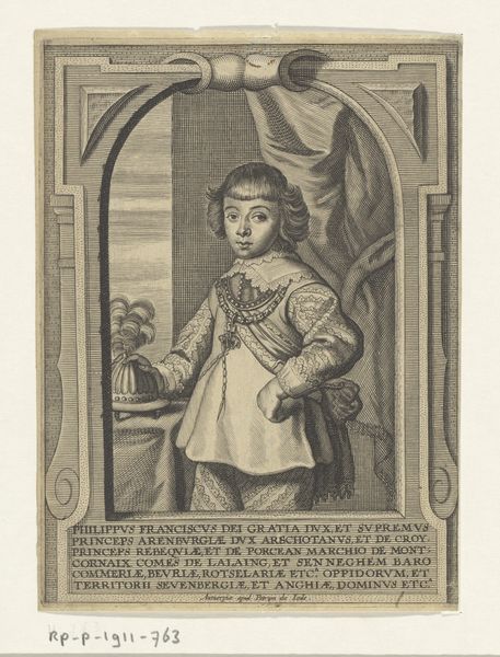 Editor: This is a portrait of Susanne Jacobaea Hellbach, an engraving by Friedrich Gottlob Schlitterlau, dating somewhere between 1740 and 1782. The woman in the portrait seems confident, maybe even a little stern. What strikes you most about this piece? Curator: I see a carefully constructed representation of female identity within the confines of 18th-century societal expectations. Notice how the elaborate frame, almost aggressively ornate, mirrors the intricate detailing of her dress. This reinforces the idea of women, particularly upper-class women like Susanne, as objects of visual consumption, almost decorative elements themselves. Do you think the choice of engraving as a medium impacts the reading of the artwork? Editor: Definitely. An engraving feels very controlled and precise, reinforcing the formality. The Latin text, too, feels like it's building up her status and emphasizing her pedigree, making it impenetrable. Curator: Exactly! The portrait is literally framed by layers of privilege and exclusion. Who has access to the visual and written language present? Moreover, her direct gaze, while seemingly confident, could be interpreted as a performance. Is she looking at us or at some ideal of femininity she’s compelled to embody? Do you think the symbolism suggests that the portrayal may be restricted to fit societal stereotypes? Editor: That's a great point. The text at the bottom probably contains the coat of arms, further indicating familial history and emphasizing the status which is associated with that identity. So is her apparent confidence more about fulfilling expectations than expressing her true self? Curator: Precisely. And thinking about the artist – a man – further complicates the picture. Whose gaze are we really seeing reflected here? By questioning those gazes and decoding the visual symbols and power structures represented, we can understand more about how women negotiated their identities. Editor: This makes me view the portrait very differently. It’s not just a historical record, but a site of negotiation and even resistance. Curator: Agreed. Engaging with these layers helps reveal untold stories within seemingly conventional artworks.