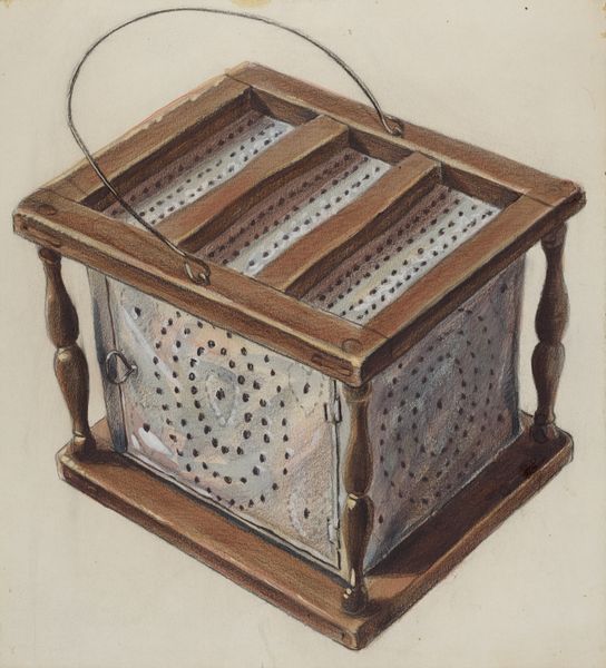 Marie Luttrell made this drawing of a foot warmer at some point, and from what I can see, it looks like she used graphite and watercolor. I can't help but get drawn into the details here, the kind of meticulous mark-making that speaks to a real love for the process. The heart motif punched into the sides of the warmer has a beautiful, almost obsessive quality. The way she renders the metallic surface, not quite silver, not quite grey, but something in between. She allows the light to play across the surface. It's all about the texture, the feel of the metal. It's a very intimate kind of attention, reminding me of those drawings by Marsden Hartley. Luttrell invites us into a quiet, contemplative space, where the act of seeing becomes a form of knowing. It’s more than just a foot warmer; it’s a container of care, rendered with love.