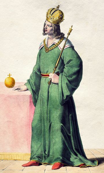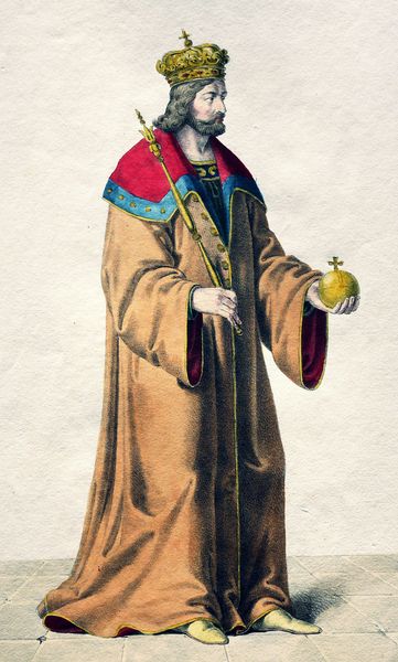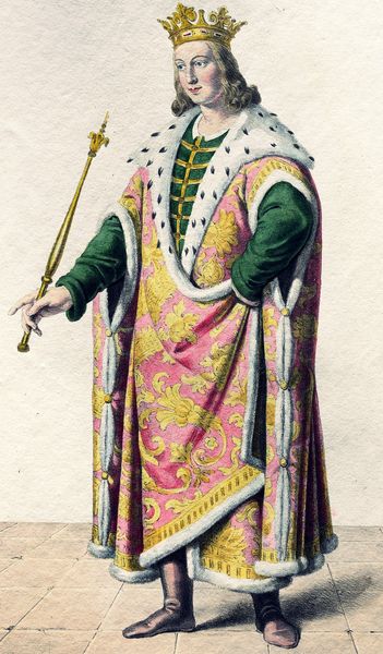 Josef Kriehuber created this artwork, titled Bela IV. Here, we see Bela IV adorned with symbols of power and authority, the crown and scepter being the most prominent. These aren't merely objects, they are potent symbols steeped in history, signaling the divine right to rule. Consider the scepter: a staff of authority wielded since ancient times, from pharaohs to emperors. It resurfaces time and again throughout history, each time imbued with the weight of tradition, yet subtly altered by the culture that adopts it. It reflects the collective memory of leadership, power, and the social order. The act of bestowing a crown is not just ceremonial; it’s a psychological transfer of power. This ritualistic practice is rooted in our subconscious recognition of authority, a symbol so deeply embedded it transcends individual rulers. It's a powerful force that engages us on a subconscious level, stirring deep-seated notions of order and governance. The cyclical progression of symbols like the scepter shows how they resurface, evolve, and take on new meanings in differing contexts. It's a testament to the enduring power of visual language in shaping our collective consciousness.