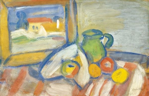 Pyotr Konchalovsky made this oil painting, Oranges, sometime around 1908. It depicts a simple still life of fruit and a pitcher, but it reflects a fascinating moment in Russian art history. Konchalovsky was a founding member of the Jack of Diamonds group, a collective of avant-garde artists who sought to break free from academic traditions. They embraced bright colors, bold brushstrokes, and everyday subjects, drawing inspiration from French Post-Impressionism and Fauvism. Notice how Konchalovsky uses thick, visible brushstrokes to render the textures of the fruit and the pitcher, giving the painting a sense of immediacy and energy. The subject matter, a humble still life, rejects the grand historical narratives favored by the Russian Academy. To fully understand this painting, we might consult manifestos, exhibition reviews, and biographies of the Jack of Diamonds artists. By examining the social and institutional context in which it was made, we can appreciate how this seemingly simple still life challenged the art establishment and helped to pave the way for modernism in Russia.
