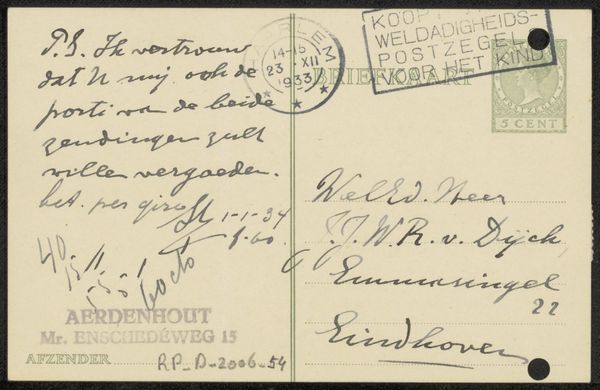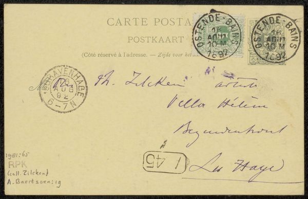 This Carte Postale was sent to August Allebé in 1919. It’s funny how a simple postcard can be a little work of art. I mean, look at the handwriting, so smooth and flowing, like one continuous brushstroke. The ink color has faded to a light gray. Each word seems carefully placed, with a rhythm all its own. The stamp and the postmark act like little formal interventions, interrupting the flow of the message. It’s so easy to imagine the person writing this, probably in a hurry, but still taking the time to make each letter just so. You can almost feel the texture of the paper and the weight of the writer's hand as they sign off "E. de Haas". Reminds me of Cy Twombly and his amazing handwriting. A postcard isn’t just a message, it's a little piece of someone's life, a moment captured and sent through time. Art is like that, too.