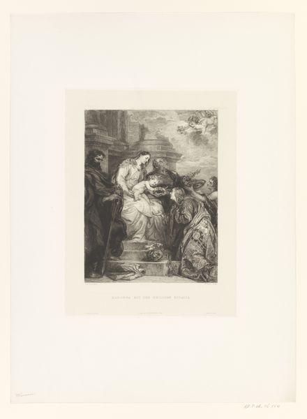 Editor: This print, made by William Unger between 1861 and 1889, depicts “Christus verschijnt aan de apostelen,” or “Christ Appearing to the Apostles." The intricate engraving style is stunning, and the scene feels so reverent and theatrical, all at the same time! How do you interpret this work within its historical context? Curator: Unger’s engraving reproduces an existing painting. This print is fascinating not just as a devotional image, but as a *copy* intended for a wider, probably bourgeois, audience. The mass dissemination of religious imagery through prints had a profound impact on religious practice. Were people simply looking at these images, or were they buying and collecting them? How did the burgeoning art market of the 19th century affect personal religious expression? Editor: That's an interesting question about collection versus simple viewing. I hadn't considered the market aspect so directly. It makes me wonder about the role of the museum too—a space where images are now ‘viewed’ rather than necessarily bought, sold, or revered. Curator: Exactly. Unger’s print ends up in the Rijksmuseum, not as a religious icon, but as a piece of art history and cultural history. Does its religious function diminish, become merely symbolic, or gain new significance? The print becomes an object to be examined, researched and interpreted within an institution with its own political, cultural and even financial investment in representing that culture. What function does this print have *now*? Editor: I suppose now it serves as a kind of document—a reminder of the intersections between faith, art, and economics in 19th-century European society, and also something that represents a network of values around it that change as society changes. Thank you. Curator: Precisely. It reveals how visual representations of faith have been transformed by changing cultural institutions.