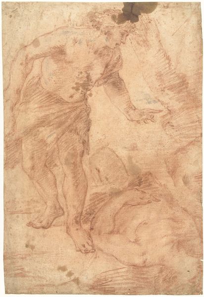 Luca Giordano created this ink drawing, titled "The Almighty with Angels", in the late 17th century. The sepia tones and dynamic composition immediately draw us into a celestial vision. Giordano masterfully uses line and form to create a sense of movement and depth. The Almighty is enthroned above a congregation of angels, their small bodies rendered with quick, swirling lines, conveying their ethereal nature. Below, additional groups of angels further emphasize the heavens opening before us. What is intriguing is how the artist uses the structure of the page itself. The composition is divided, almost like a stage, creating a hierarchy, with God in the upper section, presiding over the cherubic throngs. These divisions, combined with the energetic lines, destabilize a conventional, static religious scene. In closing, observe how Giordano used ink to create a sense of both the divine and the dynamic. This drawing invites us to contemplate the power of art to not just depict, but also to interpret and reimagine sacred narratives.