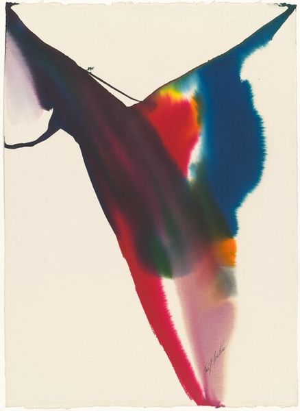 Editor: This is Sadamasa Motonaga’s "Piron Piron" from 1975, made using acrylic paint. The blending of colours gives it an airbrushed quality, almost like industrial design. What's your read on this? Curator: For me, the core is how Motonaga uses acrylic, a relatively new industrial material at the time, to mimic natural forms. It bridges the gap between organic and synthetic, highlighting our increasing reliance on manufactured goods even when representing something as basic as a "form". The smoothness conceals the labor, doesn’t it? Editor: It does. So the *process* of making this comments on a bigger shift in society? Curator: Exactly! The slick surface and clean lines, achieved through the deliberate application of a mass-produced paint, speak to a consumer culture obsessed with perfect, easily reproducible objects. It mirrors the post-war boom in Japan, where art and industrial production were closely intertwined. Where do you see consumption echoed here? Editor: Maybe the colour gradient? It’s like a mass-produced sunset. Also, it almost looks inflatable; the plastic-y material feels so smooth. It’s definitely designed to appeal. Curator: Inflatable art *was* having its moment. These visual cues directly link to the culture of the time. Pop Art critiqued and celebrated this, too. Think about the labour it took, too, in blending paints to hide the touch of the artist! Editor: I never thought about the smoothness as hiding labor, but it totally makes sense in the context of the ‘70s and mass production. Curator: Understanding the materials and methods offers an insightful commentary on society. Editor: Definitely. Looking at "Piron Piron" through that lens really changes my perception.