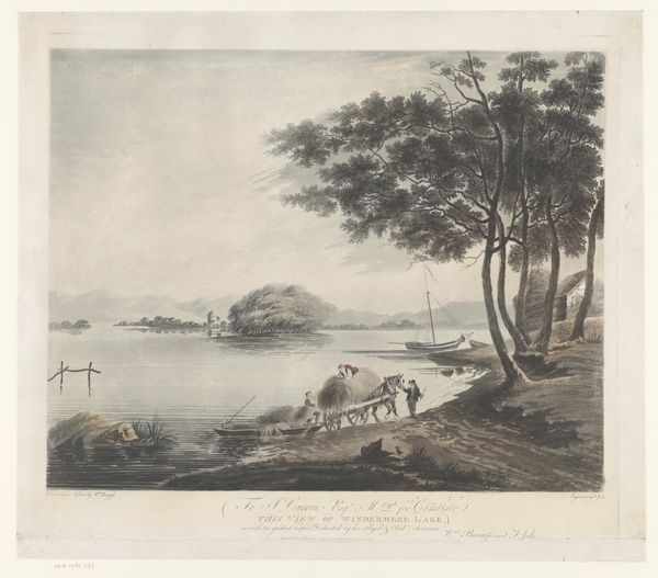 Francis Jukes created "View of Millbank on the River Thames near London," offering a window into late 18th-century England during a time of immense social and economic change. Against the backdrop of burgeoning industrialization, visible by the distant chimneys and windmills, the river was a site of commerce and labor. The figures here—the men with horses, the people on the path, and the boatman— hint at the lives dependent on the river's trade. What does it mean to romanticize the Thames as Jukes has done? His picturesque depiction subtly contrasts the idyllic with the gritty realities of labor and pollution. Notably absent is any direct representation of the era's social upheaval. By focusing on a serene landscape, Jukes avoids engaging with the stark class disparities that defined London. "View of Millbank" thus becomes a carefully constructed scene, more attuned to aesthetics than to social commentary, reflecting the complex negotiation between beauty, reality, and representation in art.