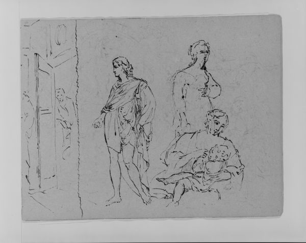 Editor: We're looking at "Samson and Delilah," an ink drawing from sometime between 1650 and 1699. There’s an almost chaotic energy to the composition, with all these figures crowded together. What strikes you most about how the artist uses line and form in this piece? Curator: I observe that the artist prioritizes the stark contrast between light and shadow. Observe the ways in which contour lines vary significantly, implying depth through modulation of strokes. Note that the focal points seem primarily structured by their adjacency with a negative space—the silhouette of Delilah and her attendant set in opposition with Samson who appears to be receding. Editor: That's interesting. I hadn’t considered the importance of the negative space so deliberately. Why do you think they chose that sort of compositional strategy? Curator: I contend that a Formalist reading emphasizes structural contrasts, creating internal dynamism irrespective of external cultural narratives. Do you perceive a pattern in the density or distribution of the artist’s mark-making and how that potentially elucidates relationships of forms in space? Editor: I see it now! There's a concentration of darker lines around Samson that draws the eye, while the areas around Delilah and the other figures are much lighter, emphasizing the contrast. So it’s about drawing focus using purely formal means, more than telling a specific story. Curator: Precisely. These stylistic choices are integral, thus we begin to grasp that what may appear as narrative-driven—history painting—may also reveal formal constructions and explorations inherent in the materiality itself. Editor: I’m going to rethink how I look at historical artworks now. Thanks for helping me see how much we can unpack just by analyzing the artist’s visual language!