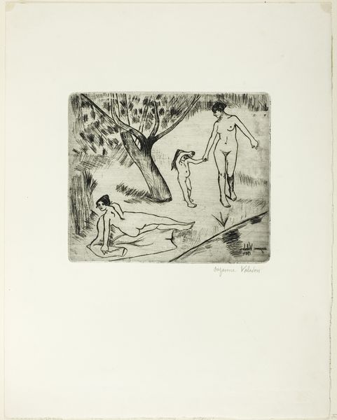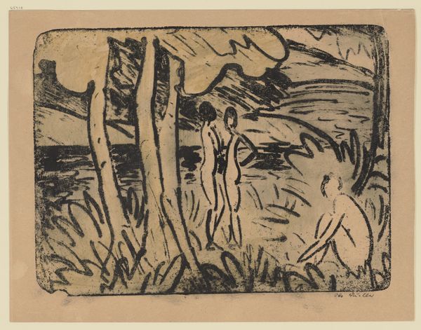 Otto Mueller made this print, Sitzendes und seitlich aufgestütztes Mädchen am Wasser II, using lithography, a printing process that allows for very direct mark-making. Lithography involves drawing with a greasy crayon onto a stone or metal plate, then treating the surface so that ink adheres only to the drawn lines. You can see in the finished print how this process yields a velvety, almost painterly quality, very different than, say, the crisp lines of an etching. It’s interesting to consider the social context of lithography. As a relatively accessible printmaking technique, it became popular in the 19th century for commercial purposes, like posters and advertisements, and this accessibility also meant that artists could use it to create multiple original images at a more affordable price point than painting. Mueller's choice of lithography, therefore, democratized the art, making it available to a wider audience, in contrast to more rarified art objects. By attending to the material and its social history, we gain a richer understanding of Mueller’s artistic choices.